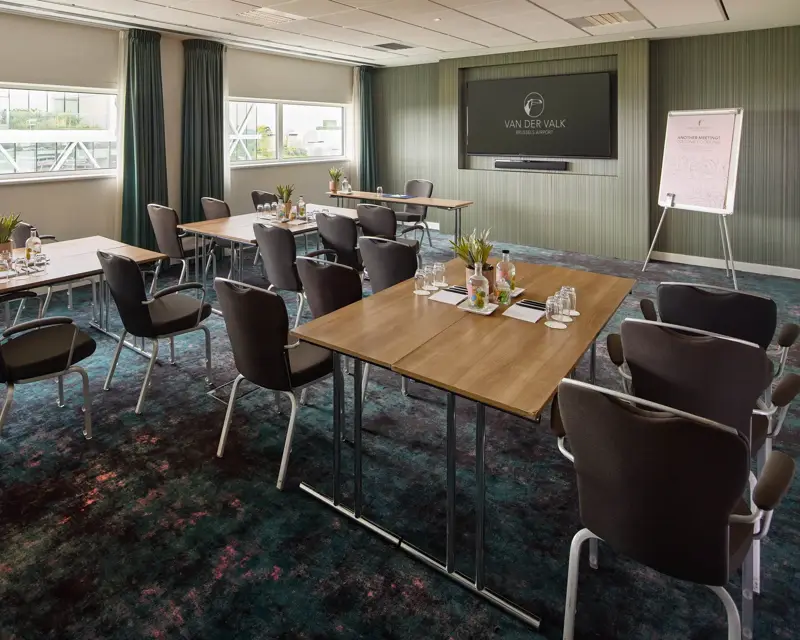 Nice hall on the seventh floor of Hotel Brussels Airport. Very suitable for groups up to 40 persons. The Aquamarine is equipped with a built-in beamer and projection screen, and can be arranged flexibly in all sorts of settings. With daylight, of course. The adjacent Diamond Lounge is the perfect place for coffee breaks and receptions.