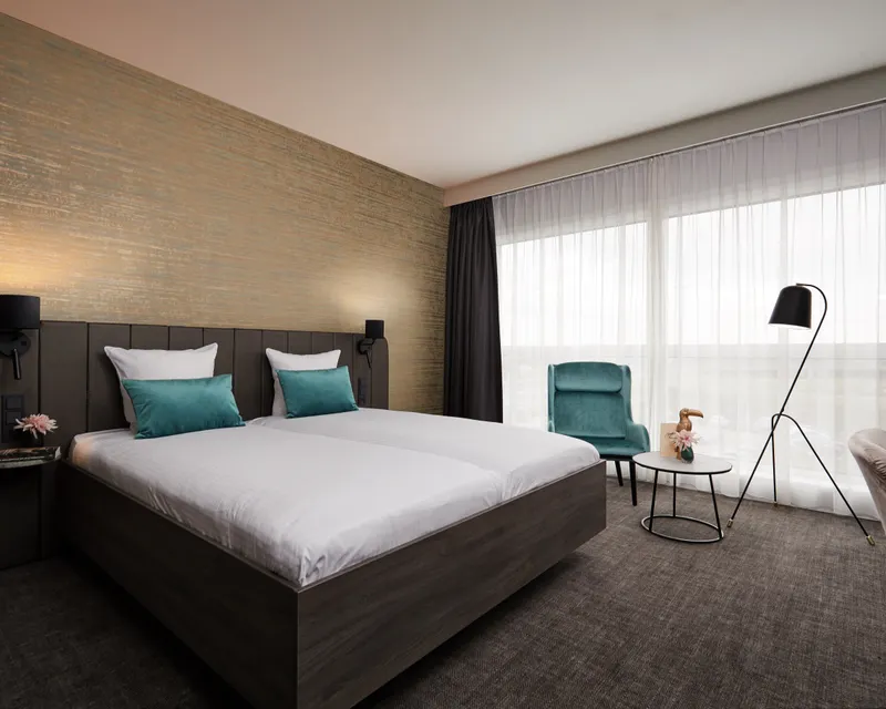 Van der Valk Hotel Brussels Airport has 172 very comfortable Superior rooms. Our guests are often surprised by their size, as they are quite larger than the average hotel room in this category! These stylishly decorated rooms are equipped with double or twin beds, a desk with a flatscreen TV, air conditioning, free Wi-Fi, a Nespresso machine and tea facilities, a minibar with free mineral water, and a bathroom with a shower or bath.
