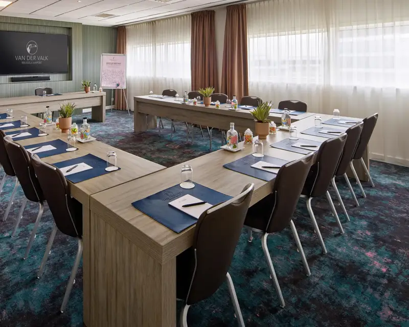 Belle salle au septième étage de l’Hôtel Brussels Airport. Parfait pour des groupes réduits jusqu’à 16 personnes. L’ Onyx est équipé d’un beamer encastré et d’un écran de projection et il est décoré avec des meubles modernes ‘ boardroom'. Évidemment avec lumière du jour. Le Diamond Lounge juste à côté est l’endroit idéal pour les pause-café et réceptions de tous genres.